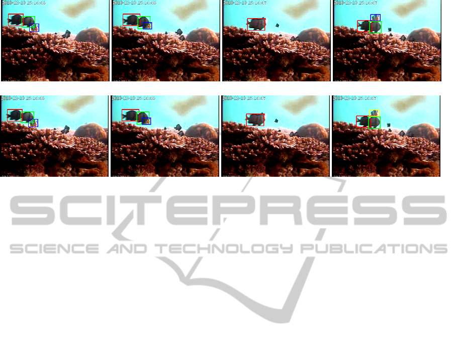 with fish-fish and fish-background occlusions mainly