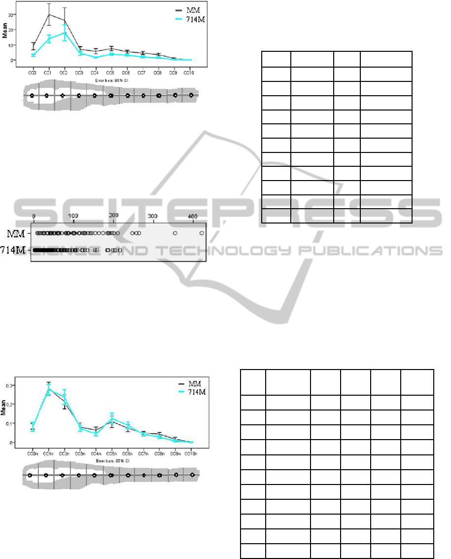 CS[i] over the total CS for both MM and 714M and