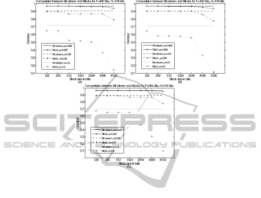 F=432, and the Goodput, therefore, is slightly lower.