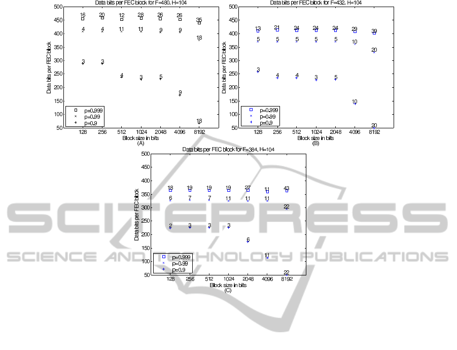 blocks while for F=432 and F=480 the first three FEC