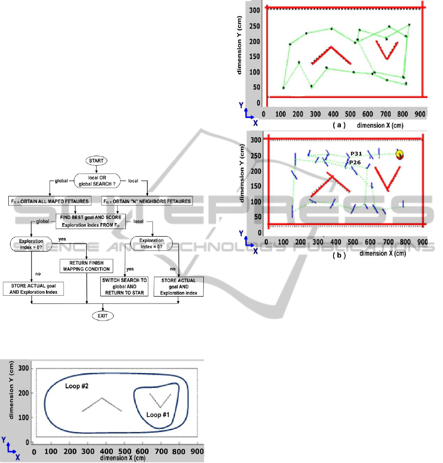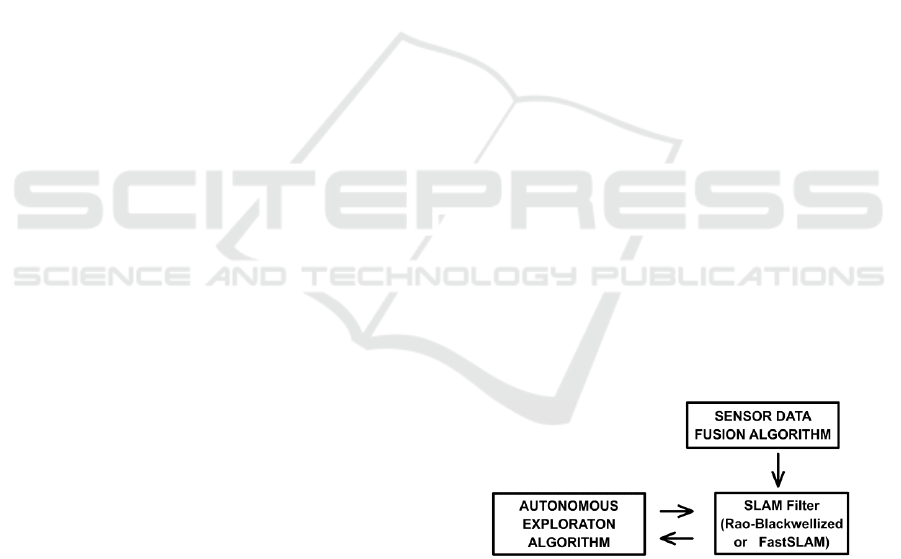 particle filter to solve the SLAM problem. An autonomous feature-based exploration algorithm was