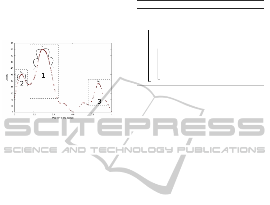 1000 objects. In the first test we set five simple clus-
