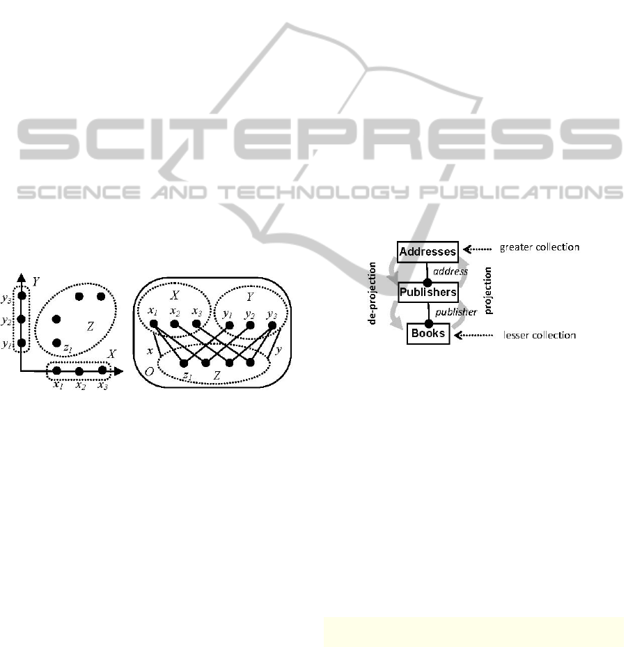elements), containment (greater elements are sets