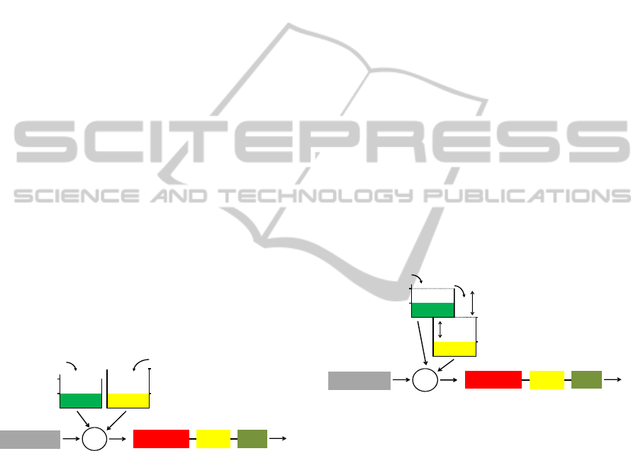 bucket has associated a distinct rate which refills the