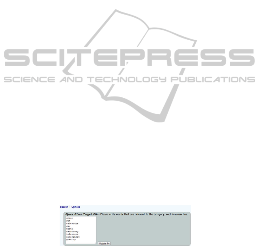 usage. Typically one starts interactive search with a set of input keywords, and after a