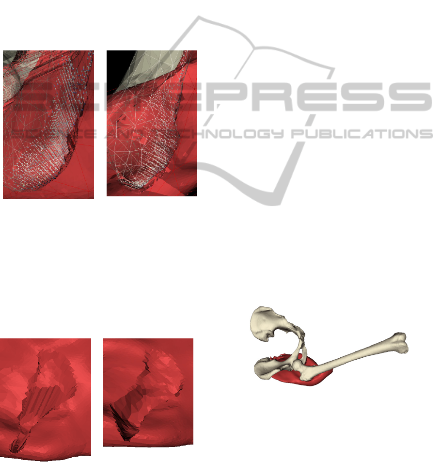 As each vertex of the original muscle mesh is de-