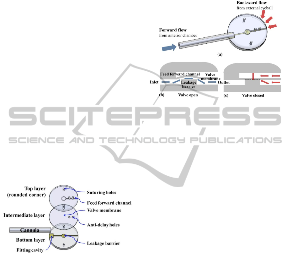 top layer (cover), which has rounded edges to reduce fibrosis, an intermediate layer (thin movable valve