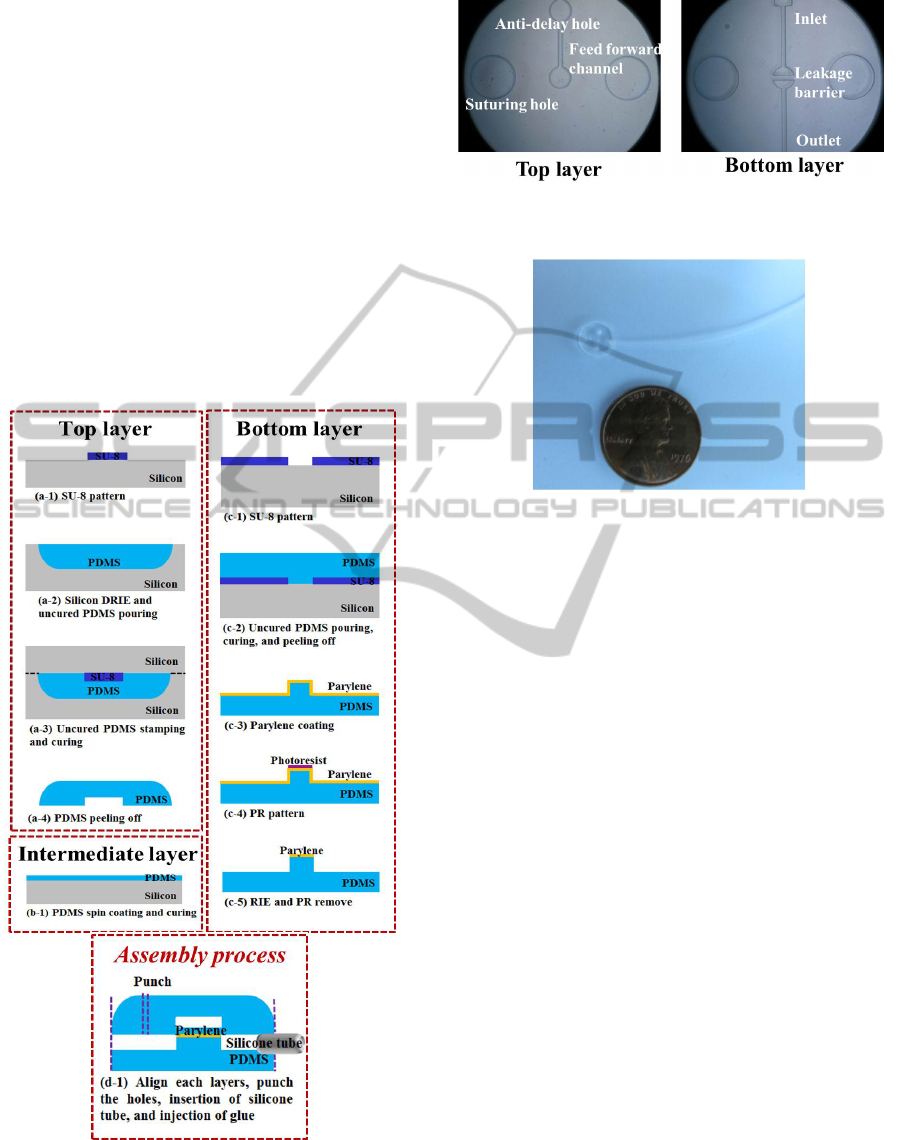 reverse flow by compensating the pressure of the outlet channel. The thickness of thin the PDMS membrane