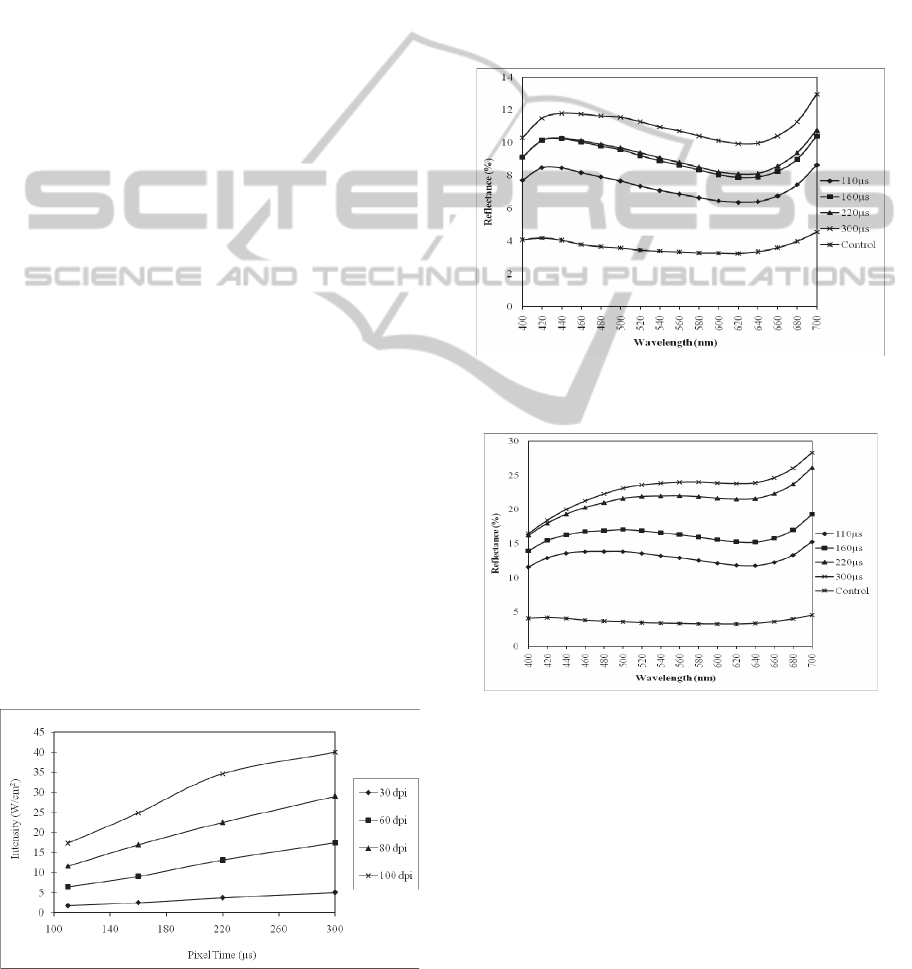 that a lighter shade was obtained for the laser-