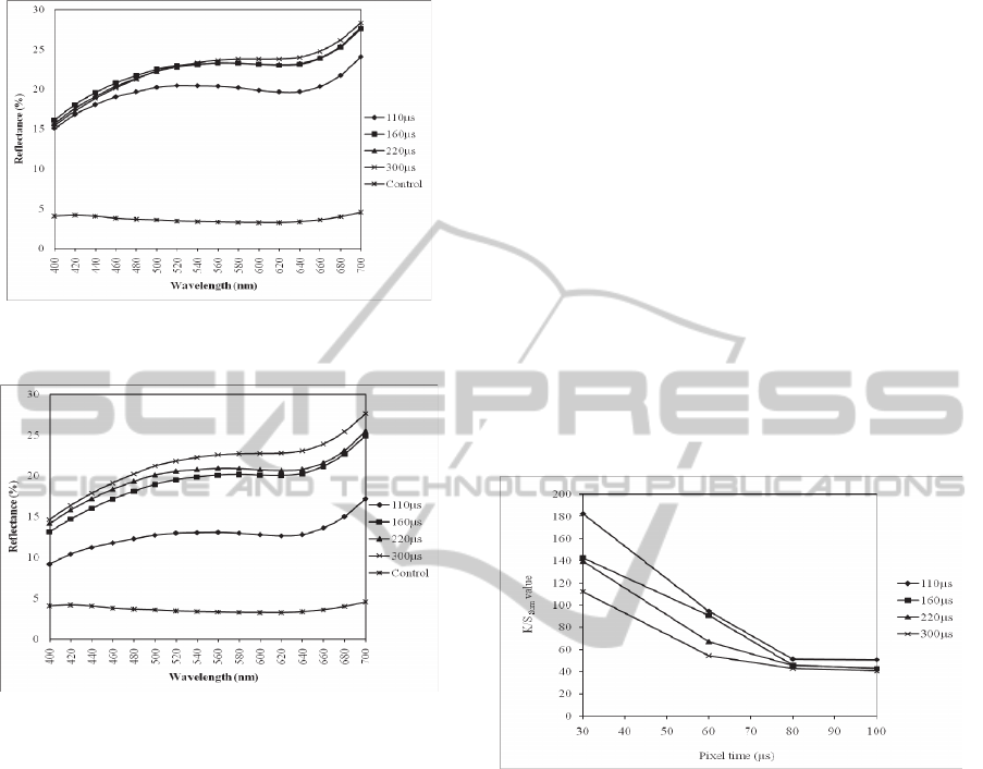reduction in CIE a* followed by 160, 220 and 300