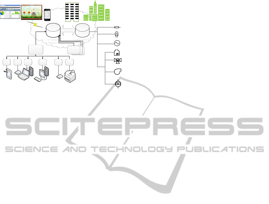 cludes sensor DB server, PC clients and other devices.