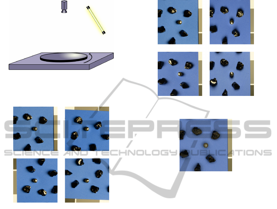 turntable and facing downwards, looking at the stones