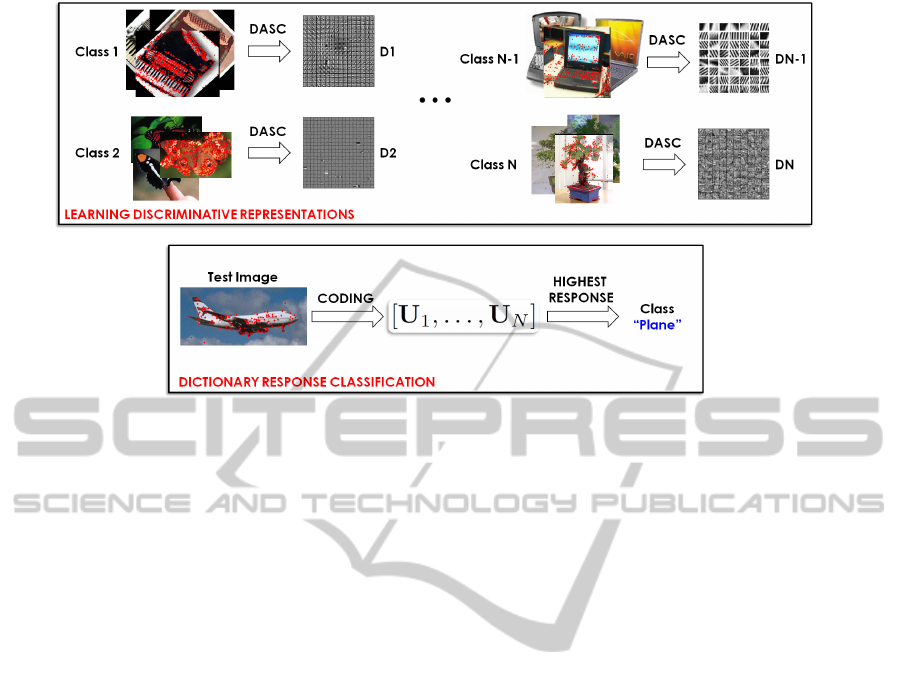 • A new classification scheme based on the dictio-