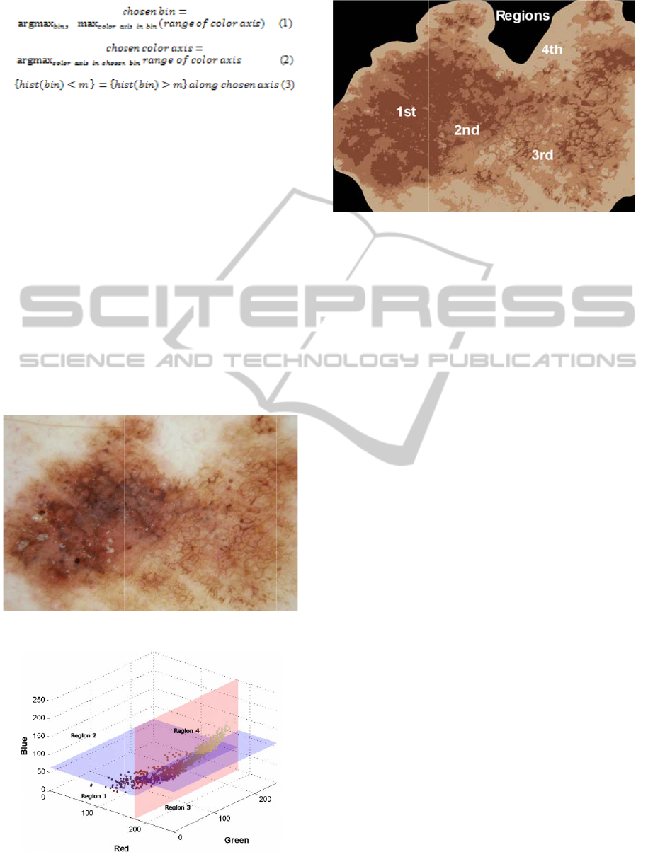 apparent in melanoma colors. Our version of the median split algorithm splits colors along the color axis