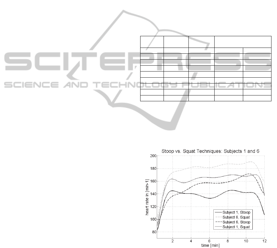 the heart rate of the squat lifting is at all times higher