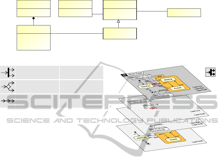 of model elements presented by a set of layers. Ele-