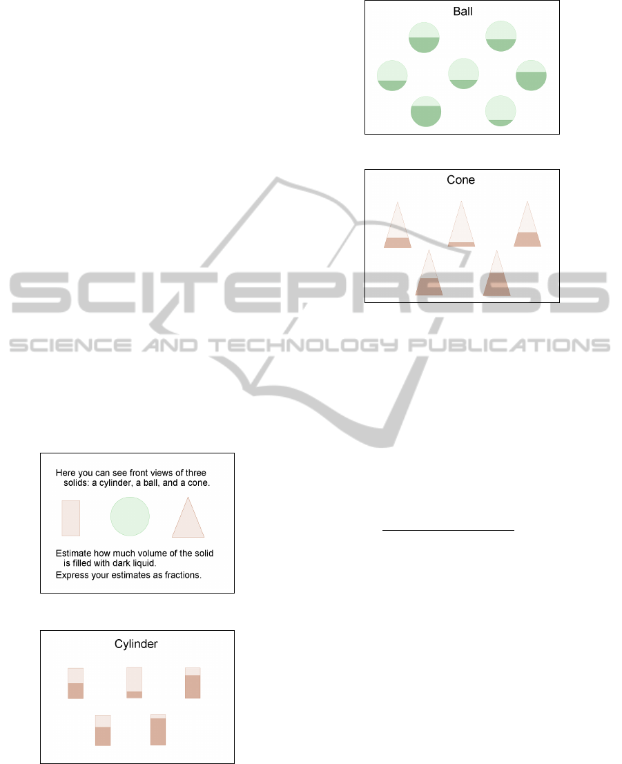 types, and investigated their skills in estimating volume ratios of essential solids (a cylinder, a ball, and a cone).
