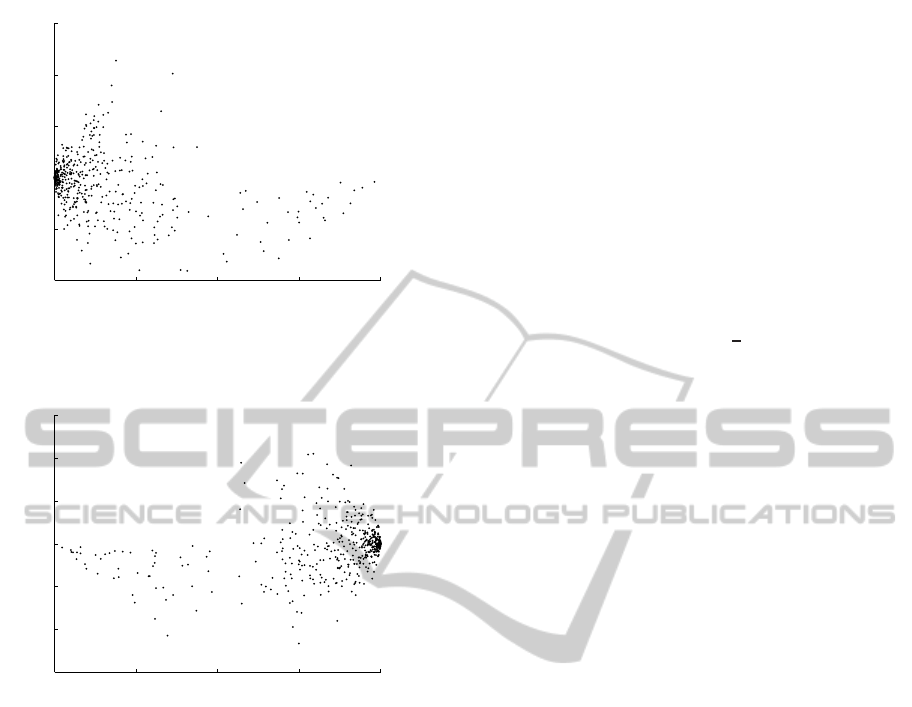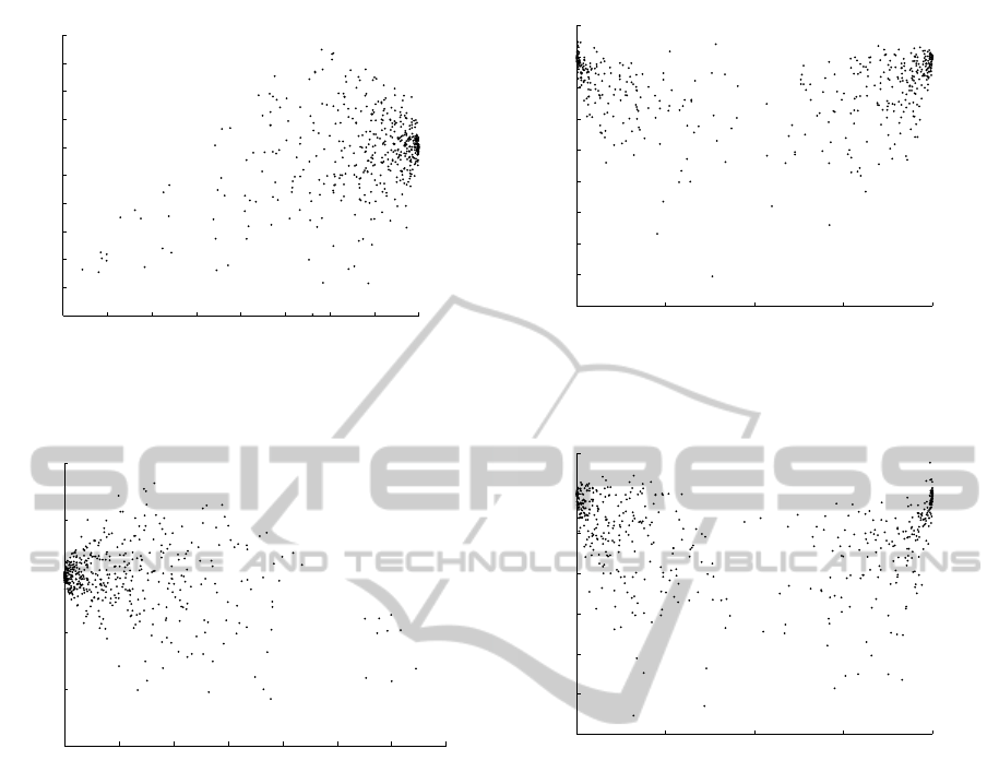 ted each result in two different plots. Each dot indi-