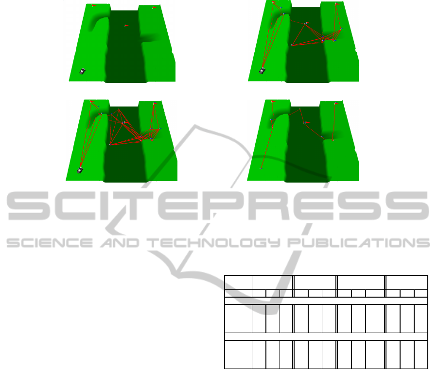 Figure 5: The first steps of a planning query in an unknown environment. (a) Initially, only the area around the starting point