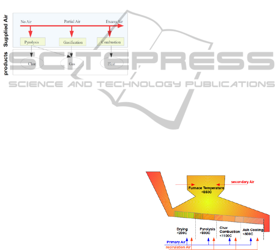 pyrolysis/gasification, char oxidation and ash take