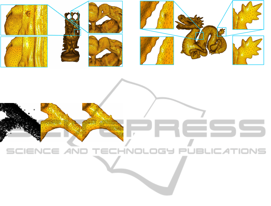 Table 1: Our results for different models. We expose the time for the reconstruction process (time), the average distance to P
