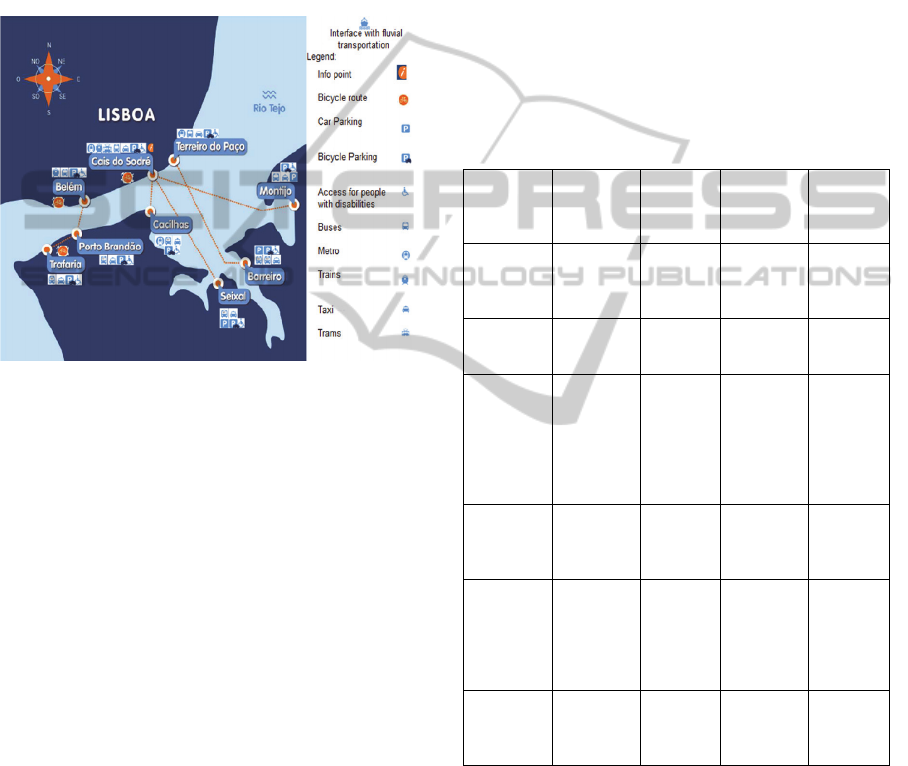 transportation routes on water that connects Lisbon with the other cities nearby. It is presented the entire