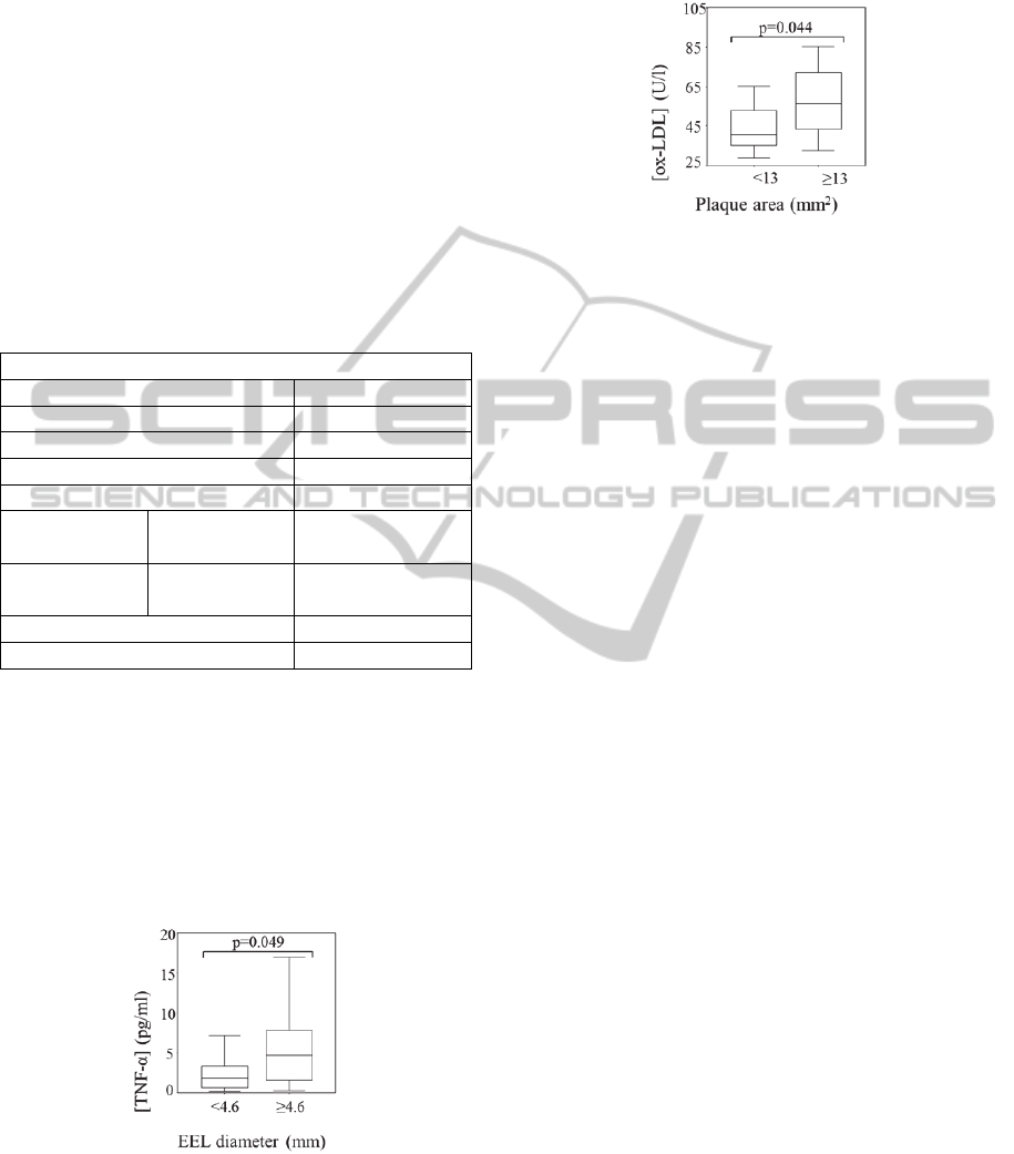 plaque area with ox-LDL concentrations in plasma