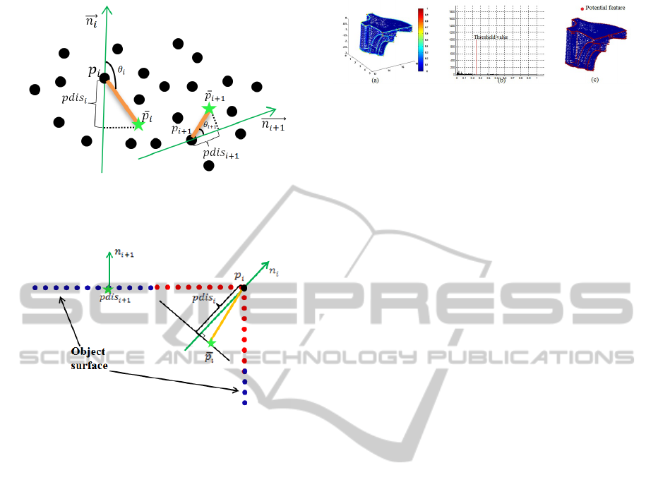 captured on the object surface. First, the vector between a given point and the centroid of its neighborhood at