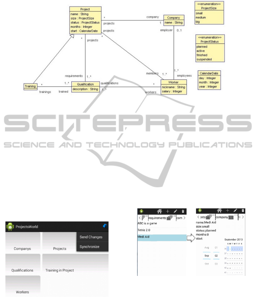 Table 3: Code generated for the Projects World exemple.