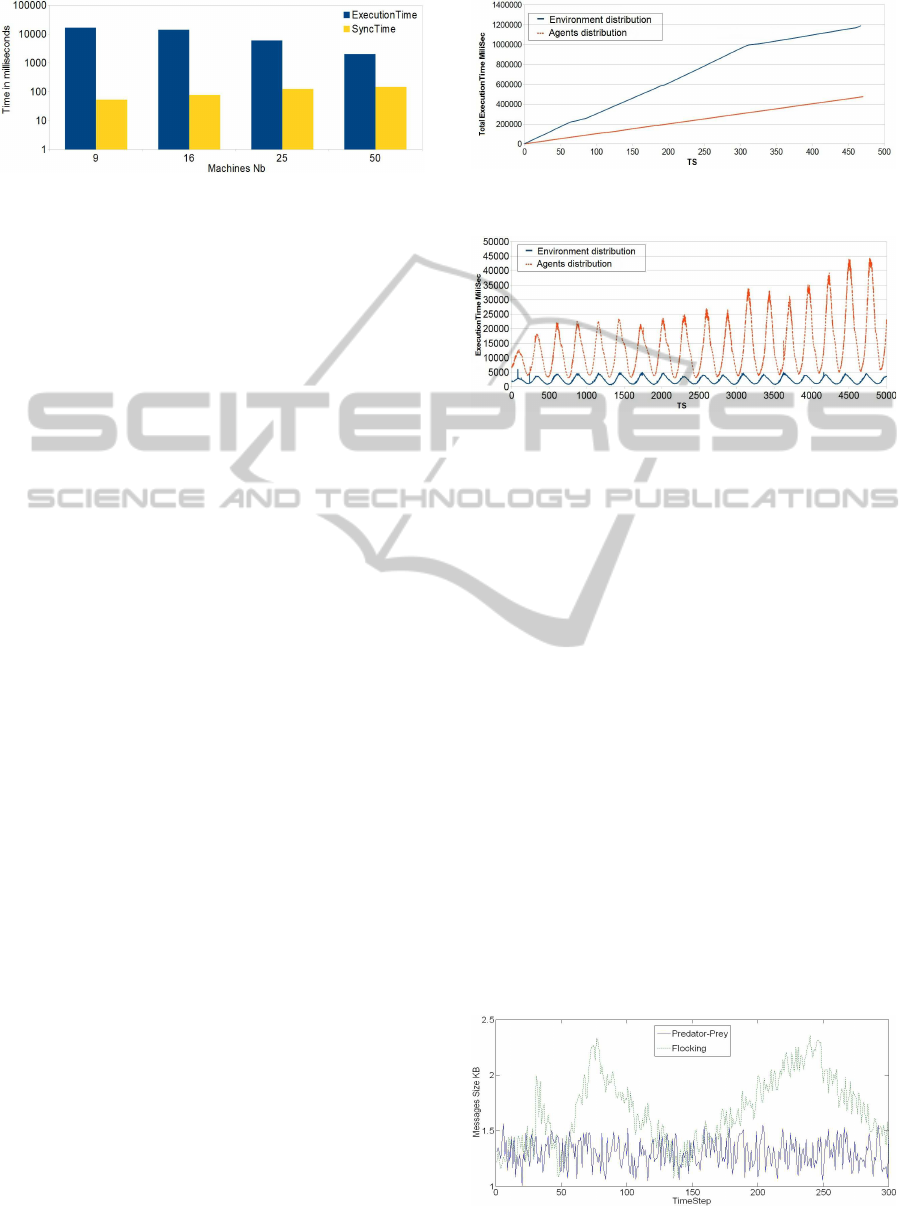 ecution time than flocking model when we distribute