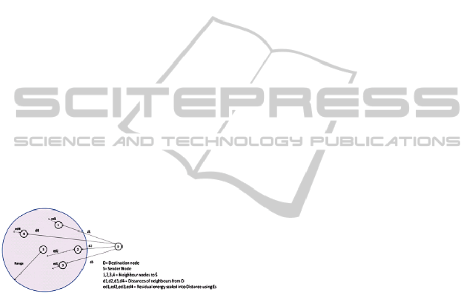 destination node and residual energy. To consider energy with distance, Energy scale value (Es) is used as a