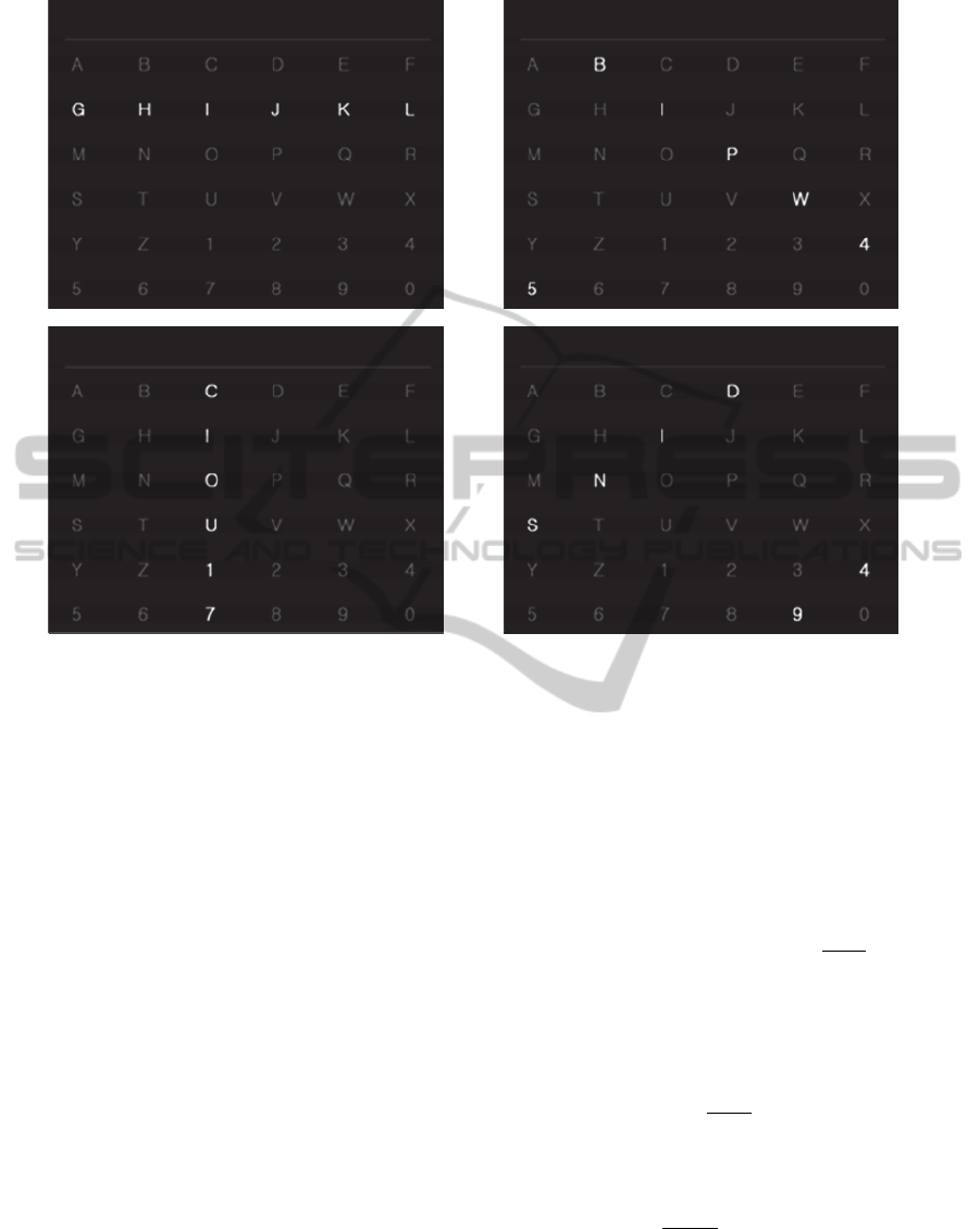 column from the 6×6 matrix flashes once at a time in