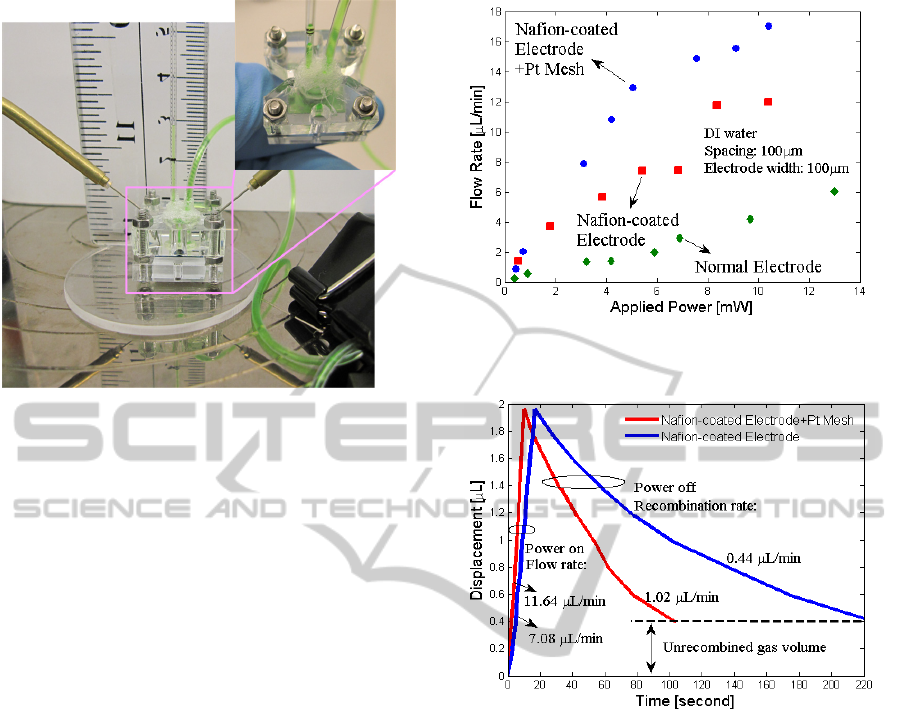 that uses a Pt coated-nickel mesh in the pumping