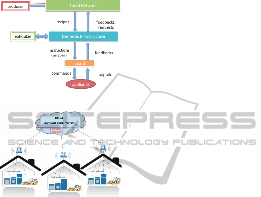 • user and appliances located in a house;