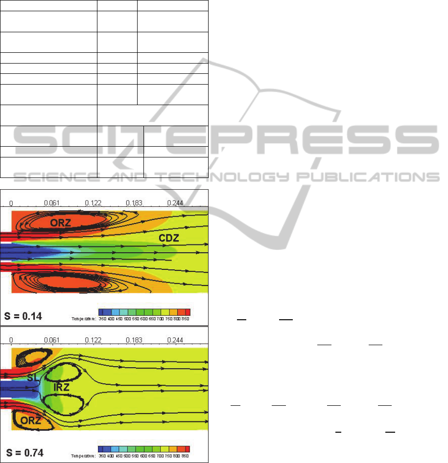 Two swirl numbers were characterised: 0.14 and 0.74. Strong swirling annular jets are responsible of an