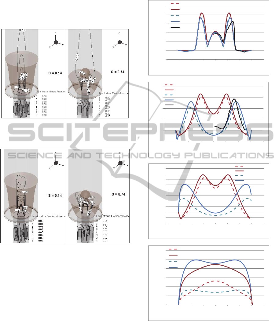 inner recirculation zone. Low swirling flows produce poorer mixture and wide flame fronts whereas strong