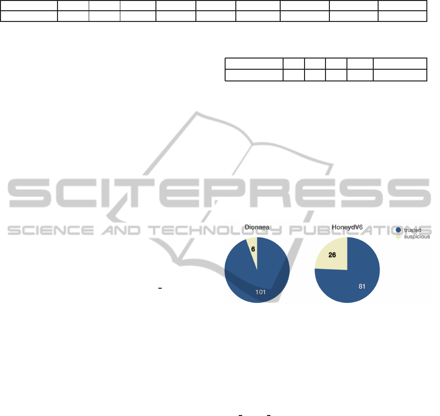 tection rate of Dionaea and HoneydV6. Since both