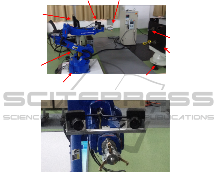 visible cameras mounted near the end of the robotic