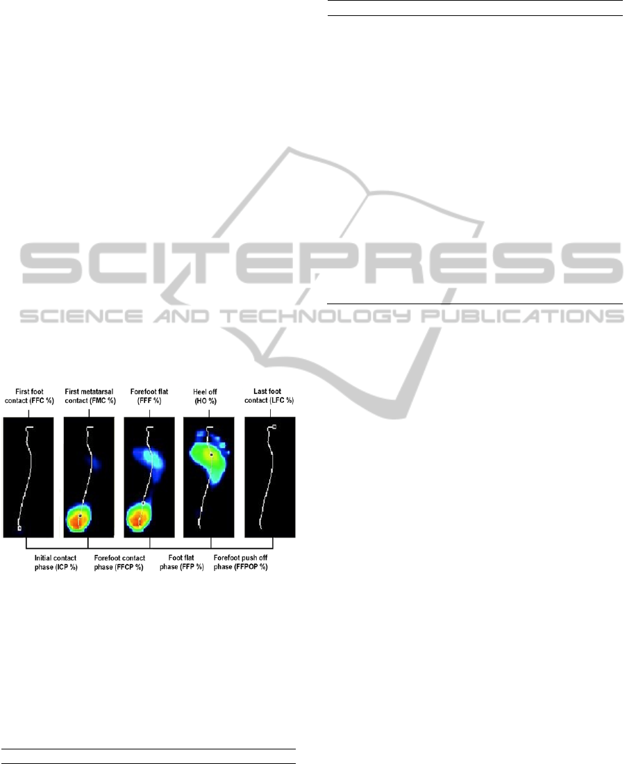 The final contact of the foot areas M1-M5 was