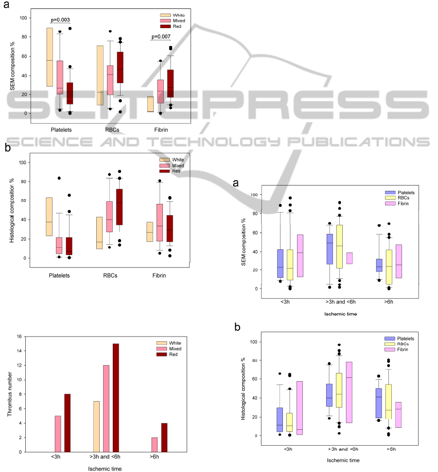 in thrombus composition among the sample groups