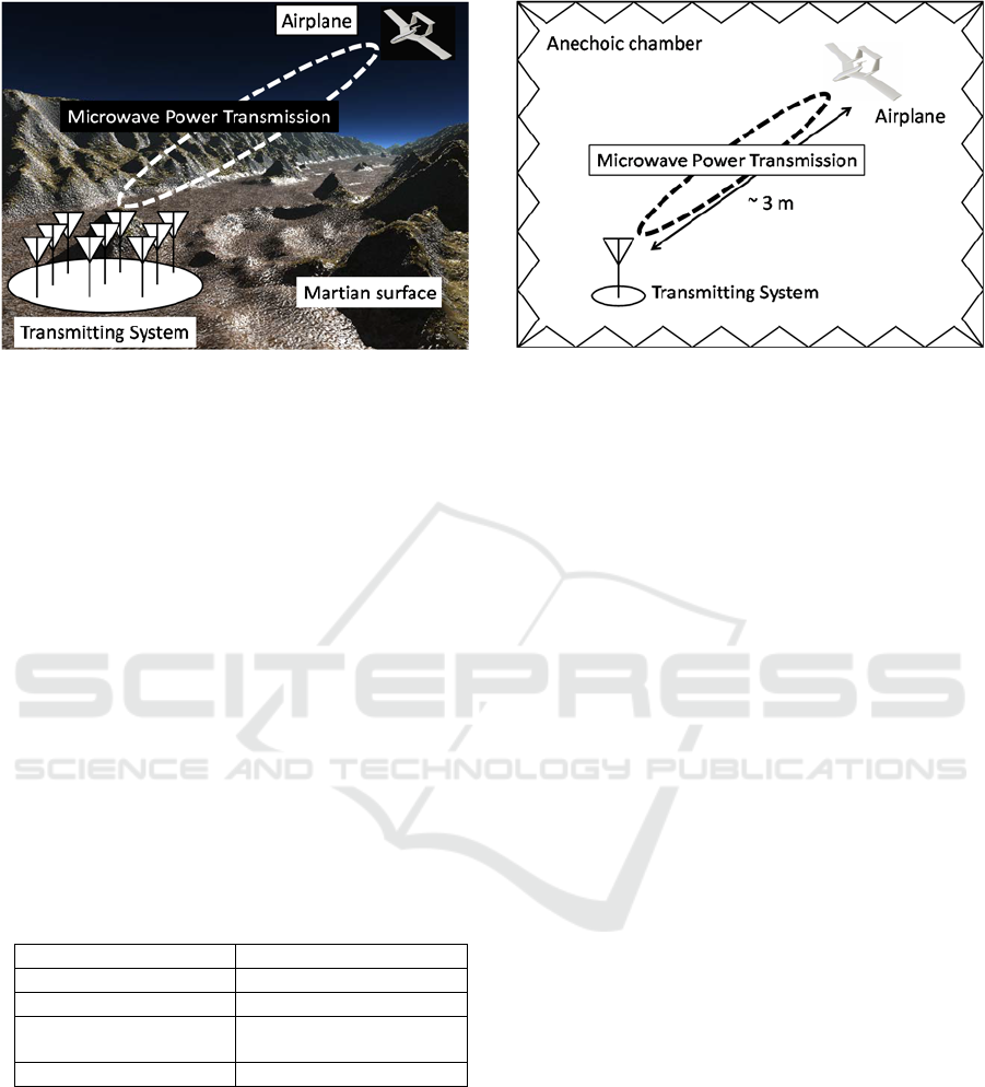 flight on Mars by using microwave power transmission. We conducted terrestrial experiments of microwave