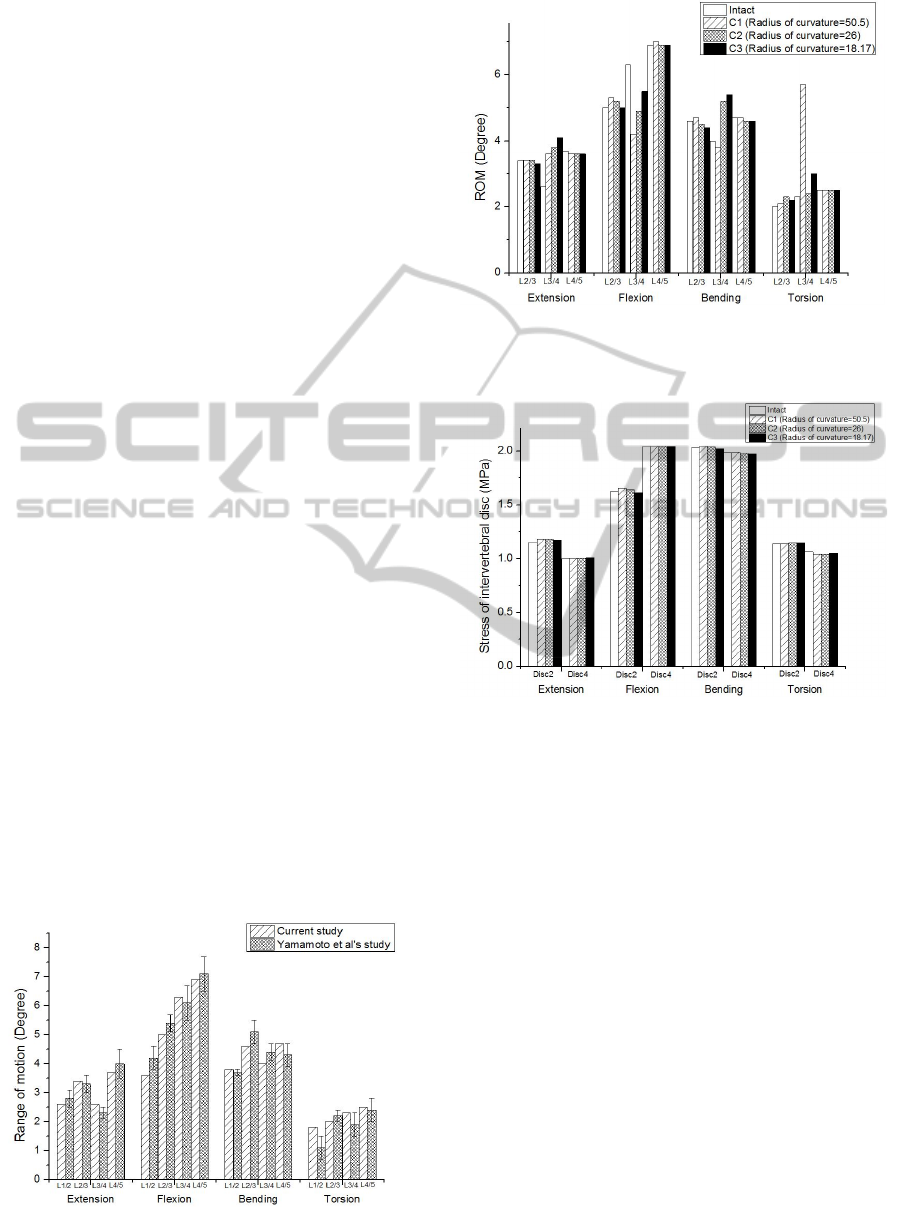 bending. In axial torsion, ROM was maximum with