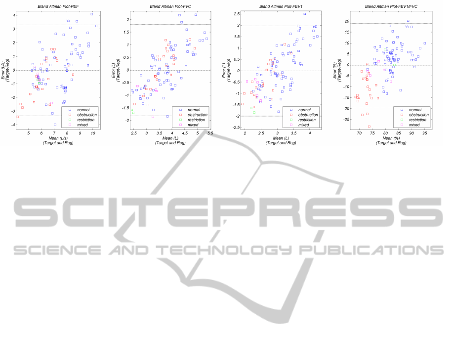 the respective clinical values as given by spirometers.