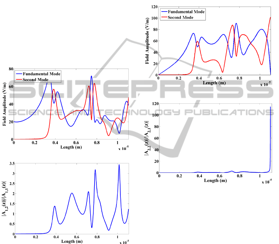 approach the mode purity achieve 99.99% at the end of active region of SOA and the mode conversion can