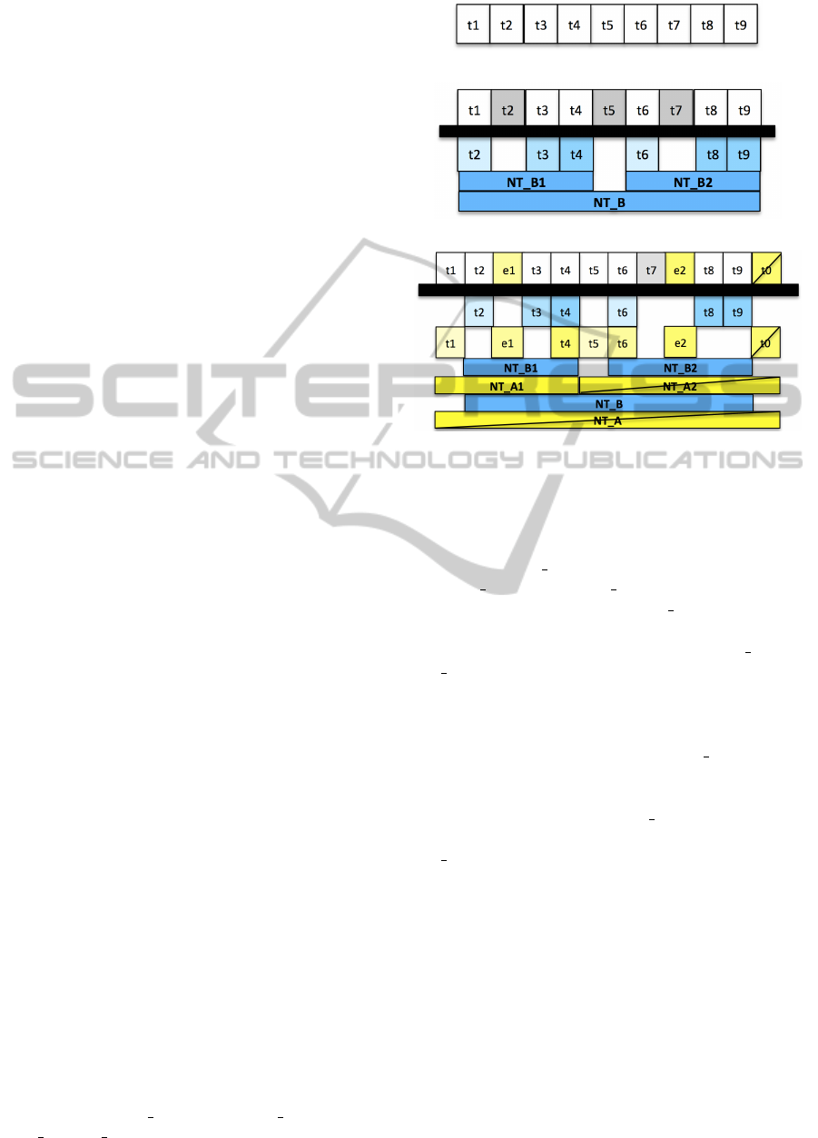 alignments between the hierarchies and the sequence.