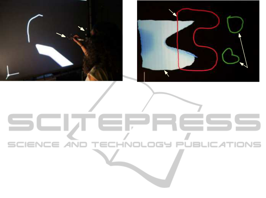 vironment within a five-sided CAVE. Freehand draw-