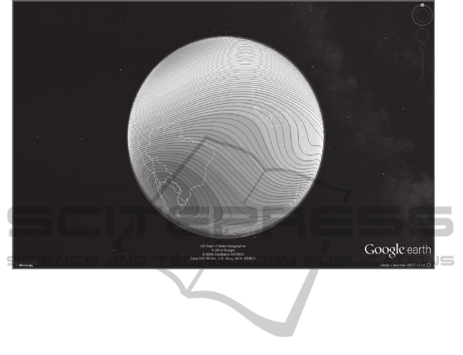 Isoloines are represented in special KML layer,