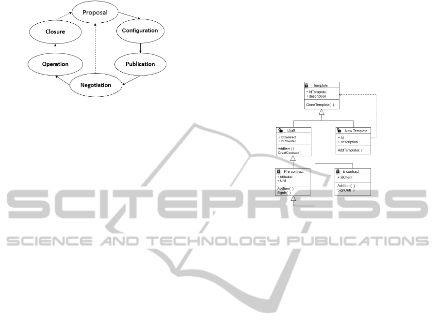 The adaptation of the e-contract lifecycle for the com-