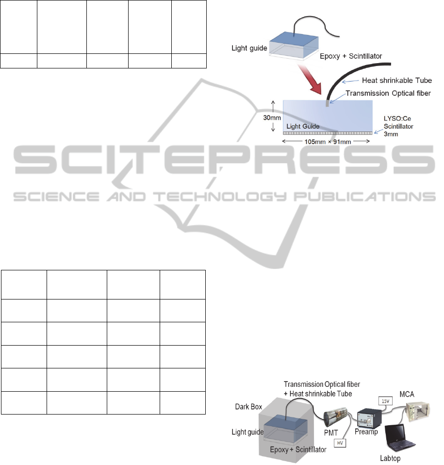 transmission optical fiber. The light measuring system was assembled combining it with photomultiplier