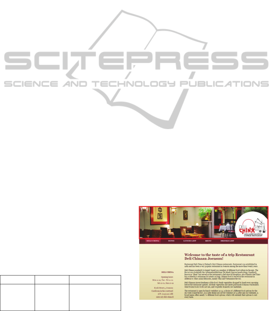 layout of the web page. Besides the selection of the